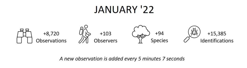 (Data used for this post taken on the 10th of February. It excludes any observations and identifications from January that were uploaded after this date)