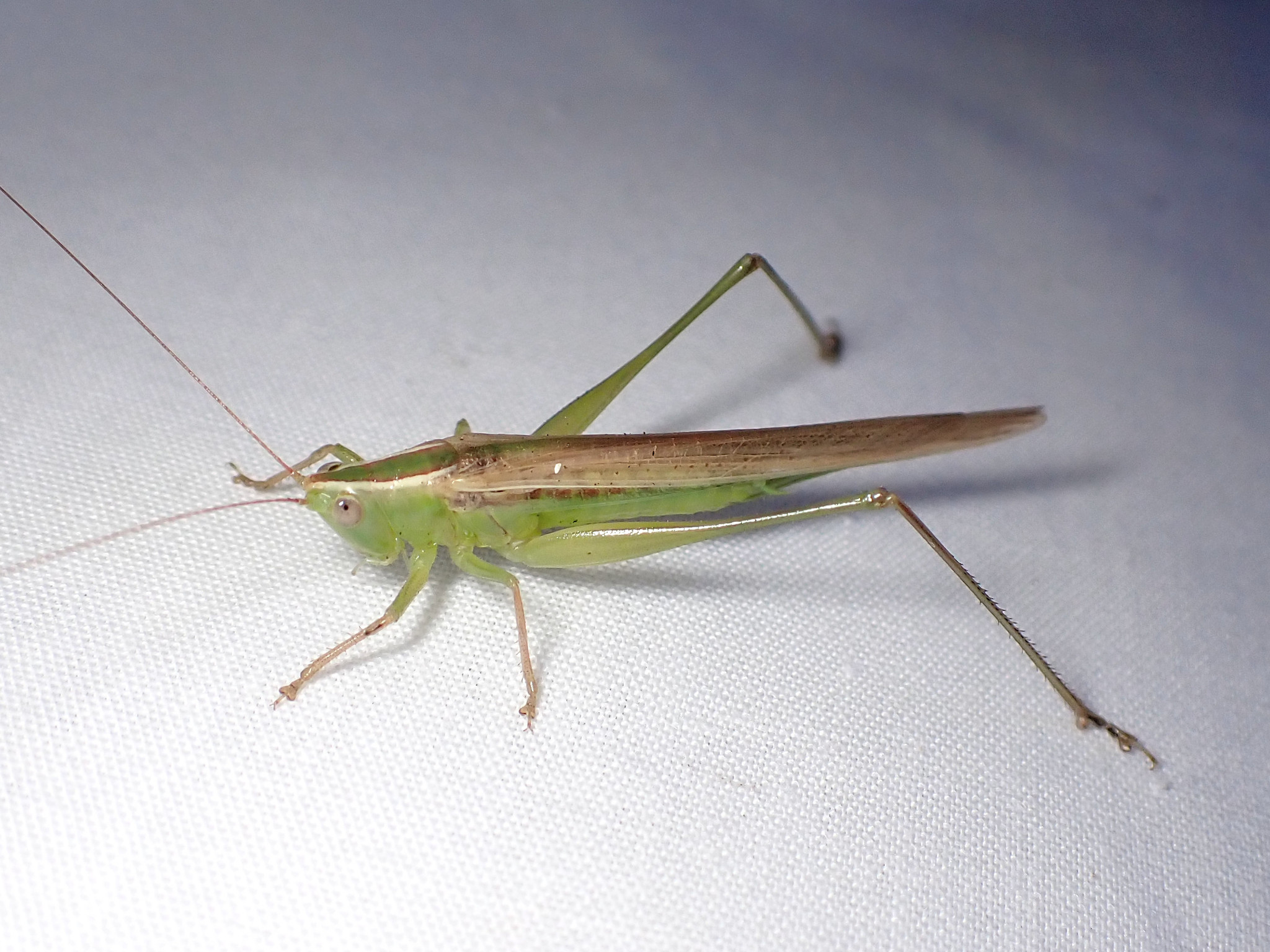 A couple of Conocephalus sp. (Lesser Meadow Katydids) turned up and climbed to the top of the sheet. A new species on the property. More commonly I find Elephantodeta sp.