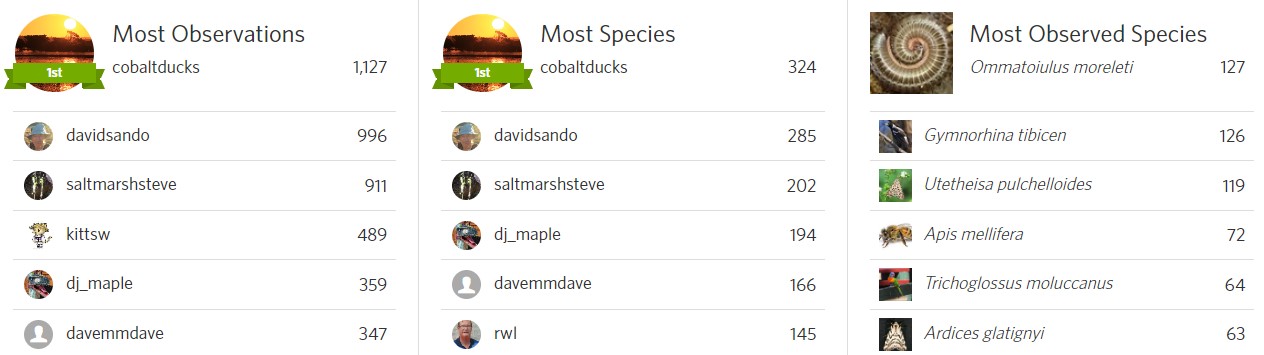 (Data used for this post taken on the 9th of May. It excludes any observations and identifications from April that were uploaded after this date)