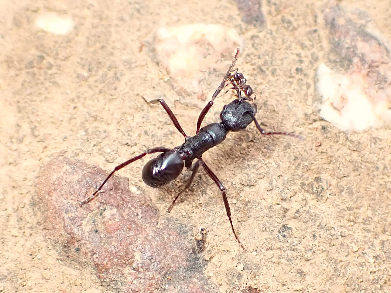 Along the track I found a great example showing the size range of two local Ant species. A relatively large Pony Ant (Genus Rhytidoponera) with a tiny Big-headed Ant (Genus Pheidole) chewing on its antenna.