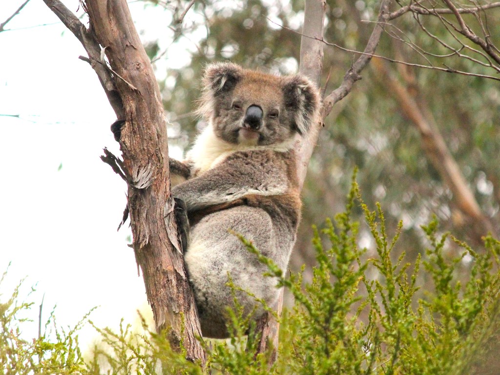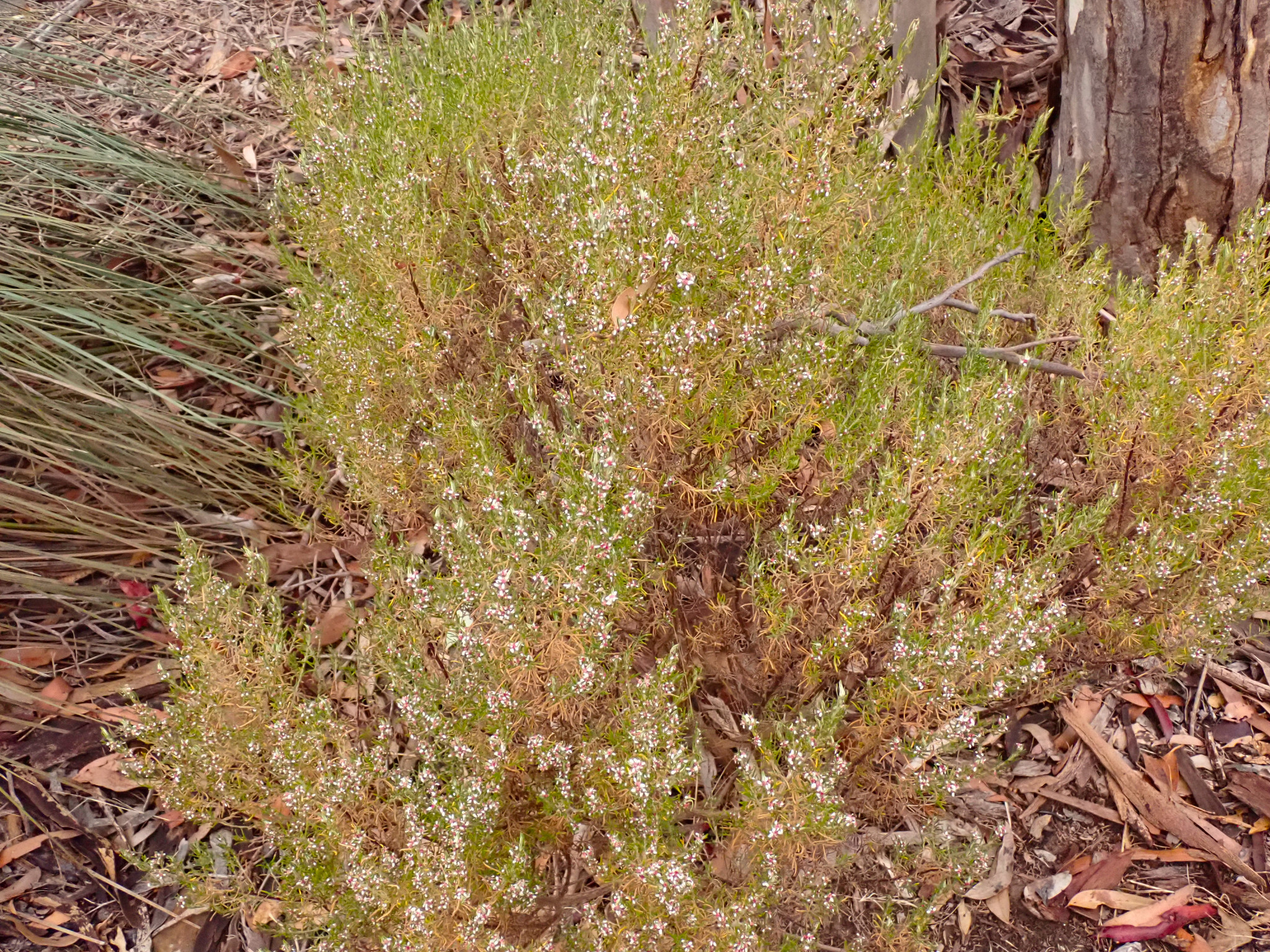 Through this section of the park there are few understory Plant species. Considering the density of vegetation higher up the river along the Echidna Hike, it seems likely this is due to historic farming usage, or an excess of Western Grey Kangaroos. Aside from the Eucalypts, the area is a repeating patchwork of Varnish Wattle (Acacia verniciflua), Sticky Hop-Bush (Dodonaea viscosa), Rock Wattle (Acacia rupicola), Kangaroo Thorn (Acacia paradoxa). A few Prickly Guinea-Flowers (Hibbertia exutiacies) are still present. The absence of understory allows large numbers of Bridal Creeper (Asparagus asparagoides) to proliferate. The occasional flowering Twiggy Daisy-Bush (Olearia ramulosa) adds some colour this time of year.