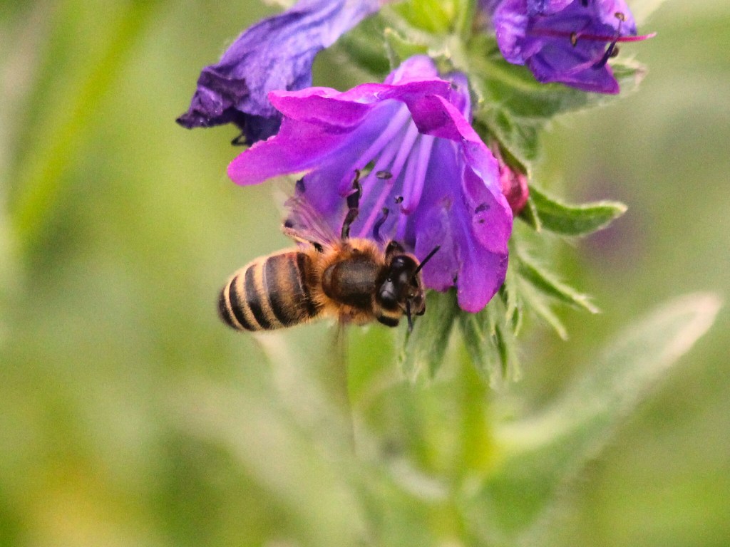 The open grass area, like any other degraded area, was filled with the usual invasive weeds. A patch of Onion-Leafed Asphodel (Asphodelus fistulosus) and lots of Paterson’s Curse (Echium plantagineum) being visited by Honey Bees (Apis mellifera).