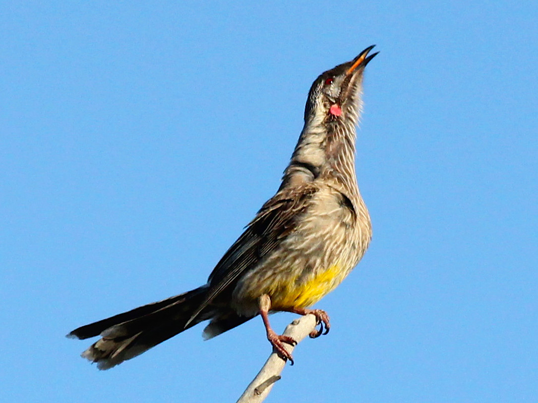 - Red-pink wattle (skin flap) behind and below the eye. (Paler in juveniles)