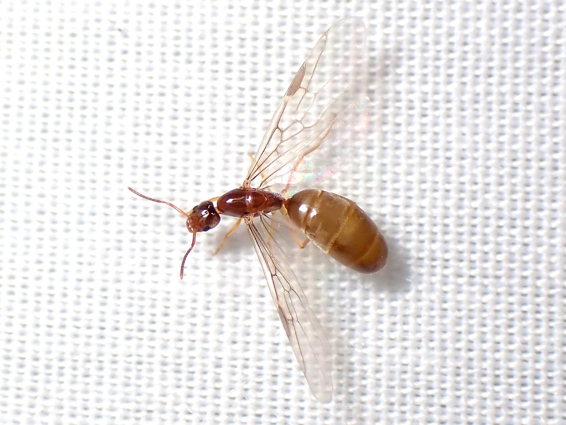 Keep any eye out for Termite alates. Where there is one, there’s usually many more. In a short time you may attract an entire swarm. Not something you want to attract to your backyard. They’ll most likely be present on warm, still nights, especially if it is also humid. If I spot a couple of these, I’ll typically turn the light off and call it a night. Ants have a mid-body constriction (between the thorax and abdomen), whereas Termites do not. Ants have hindwings shorter than forewings, whereas Termites have all four wings equal length.