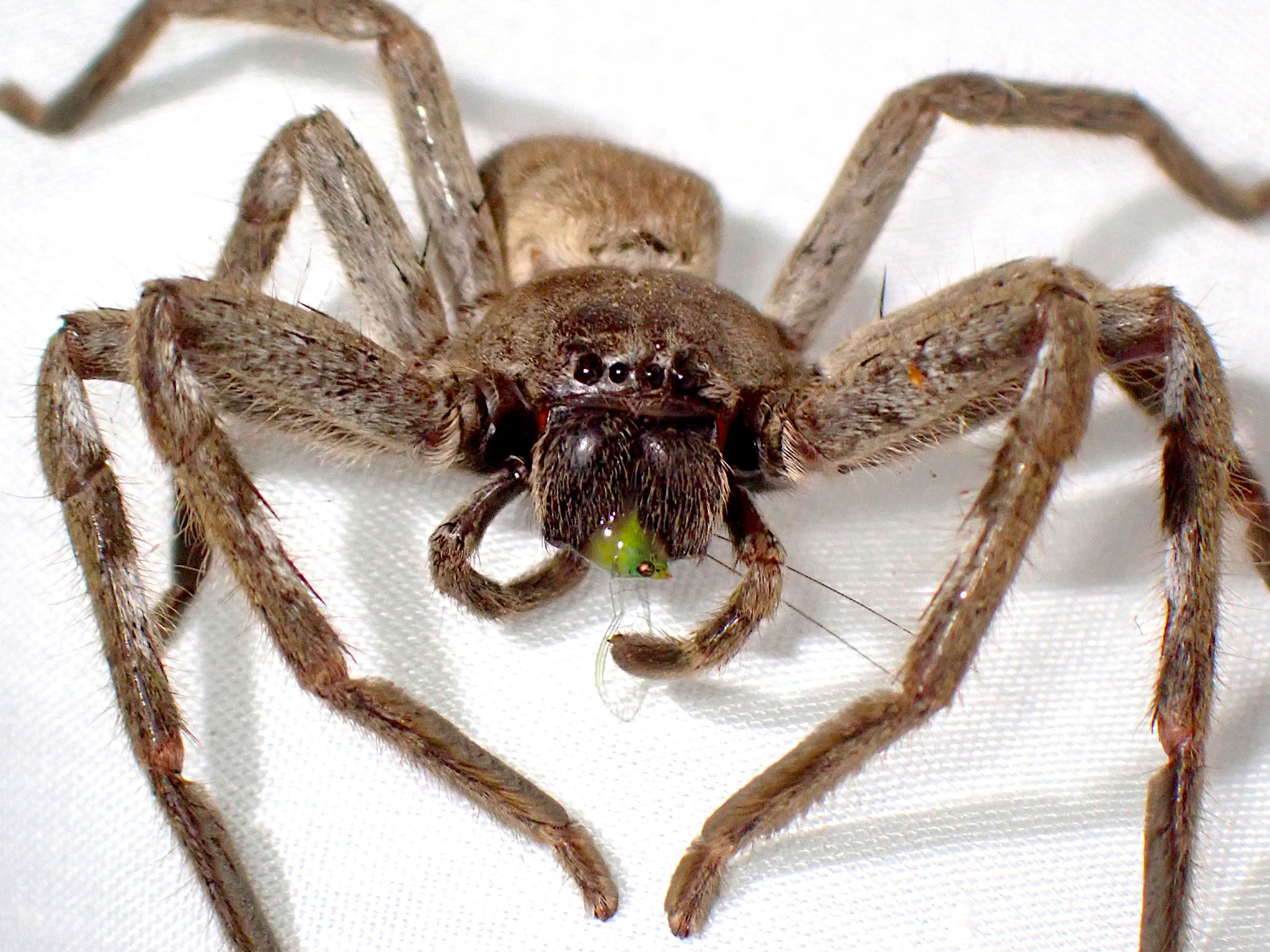 If you leave the light running long enough into the night, you’ll attract various predator species. On many evenings I have Katydid visitors, and various Spiders and Marbled Geckos come out to feast.